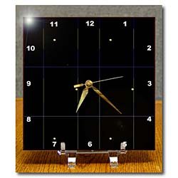 Product Description : Size: 6x6 Desk ClockYellow and Blue Wire Making Shapes with Six Exposures of a Moon Between Desk Clock is new, handcrafted utilizing unique process resulting in a stunning high gloss ceramic-like finish. Measures 6" x 6", comes with transparent acrylic stand. Single AA battery is not included.