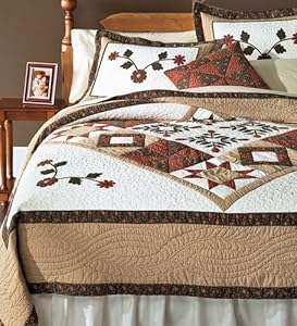 Product Description : The beauty is in the details: this hand-pieced, intricate Sampler Quilt features traditional American design, with embroidered embellishments for a rich look. Add the warm color palette and floral border, and you have the perfect dreamscape update. Machine wash. Quilt and Sham are 100% cotton face and fill; 65% poly/35% cotton backing. Pillow is 100% cotton with poly fill. Sets include quilt and two shams. Imported. Embroidered sampler quilt; Cotton face with poly/cotton backing; Floral and geometric patterns; Warm tones. Sizes Full/Queen Quilt, 90"W x 90"L, King Quilt, 104"W x 90"L, Standard Sham, 20"W x 26"L, Square Pillow, 18" sq.