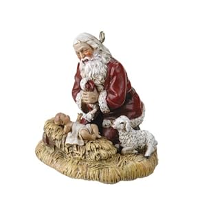 Product Description : : Product Description : : The Kneeling Santa ornament helps create a warm, loving holiday mood. Crafted of resin and hand painted, the figurine depicts Santa kneeling by the baby in a manger, lovingly attended by an onlooking sheep. Designed to hang or display free standing, the ornament is an exclusive design by Roman for Joseph's Studio. It measures 2-1/4 inches high by 2 inches wide by 2 inches deep. Send the ornament as a special gift for others or save it as a keepsake. Product Description : : The Kneeling Santa Ornament