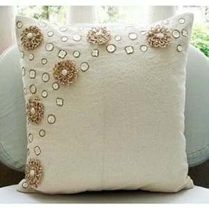 Product Description : Size: 22 x 22 inchJute Flowers - Decorative Throw Pillow Cover. This pillow cover is made using Natural Linen fabric, hand embroidered with Jute Flowers and Mother Of Pearl. Materials Used - Linen, Jute Flowers, Jute Cord, Mother Of Pearl. The color of the pillow cover is Natural Off White. The back of the pillow is the same Natural Off White Linen fabric with a flap covered zipper for clean look and easy removal. This pillow cover is available in Size 16x16 inches, 18x18 inches, 20x20 inches, 22x22 inches and 24x24 inches. Note: This Pillow Cover Design can be Customized in Other Sizes. Send me an email on urvi@thehomecentric.com with your request. Made In India under strict Quality & Environmental standards.