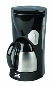 Product Description : : This gorgeous metallic black Kalorik thermo flask Coffee Maker sports a number of handy features. The perfect pour double-walled, vacuum-sealed 8 to 10 cup thermal stainless carafe, stylish enough for service at the table with dripless spout and ergonomic handle, the one-piece cover for access to reservoir and brew basket, anti drip and a keep warm function all combine to make this a quality coffee maker. The easy touch on/off switch along with the power on light indicator ensures safety.