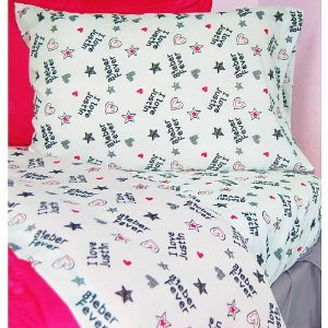 Vendor: Get comfortable with the new Justin Bieber "Heart Race" Microfiber Sheet Set! The Justin Bieber "Heart Race" Sheet Set includes
