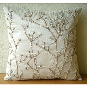 Product Description : Size: 24 x 24 inchJute Willow - Decorative Throw Pillow Cover. This pillow cover is made with Ivory Color Art Silk Dupioni Fabric beautifully handcrafted with Jute & Mother of Pearl embroidery. The back of the pillow is the same Ivory Dupioni fabric with a flap covered zipper for clean look and easy removal. This pillow cover is available in Size 16x16 inches, 18x18 inches, 20x20 inches, 22x22 inches, 24x24 inches and 26x26 inches. Note: This Pillow Cover Design can be Customized in Other Sizes. Send me an email on urvi@thehomecentric.com with your request. Made In India under strict Quality & Environmental standards.