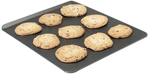 Product Description : : ReviewBaking crescent rolls, florentines, or other delicate goods on ordinary baking sheets requires precise timing and heat to avoid overbrowning. Pros know that an insulated sheet--two layers of metal with air between them--bakes goodies with less danger of burning. Its heavy, aluminized-steel construction and dark color mean this sheet heats evenly and doesn't bend, and its double-layered nonstick coating is exceptionally durable. Kaiser's ExtraordinAire bakeware is guaranteed never to warp and carries a three-year warranty against defects. Because the pan is nonstick, cleanup requires no more than a quick scrub in soapy water. --Fred Brack Product Description : : Kaiser manufactures ExtraordinAire cookie sheets by sandwiching a pocket of air between two layers of commercial-weight steel. Kaiser applies two layers of nonstick coating to the interior and exterior of ExtraordinAire cookie sheets, so foods remove easi